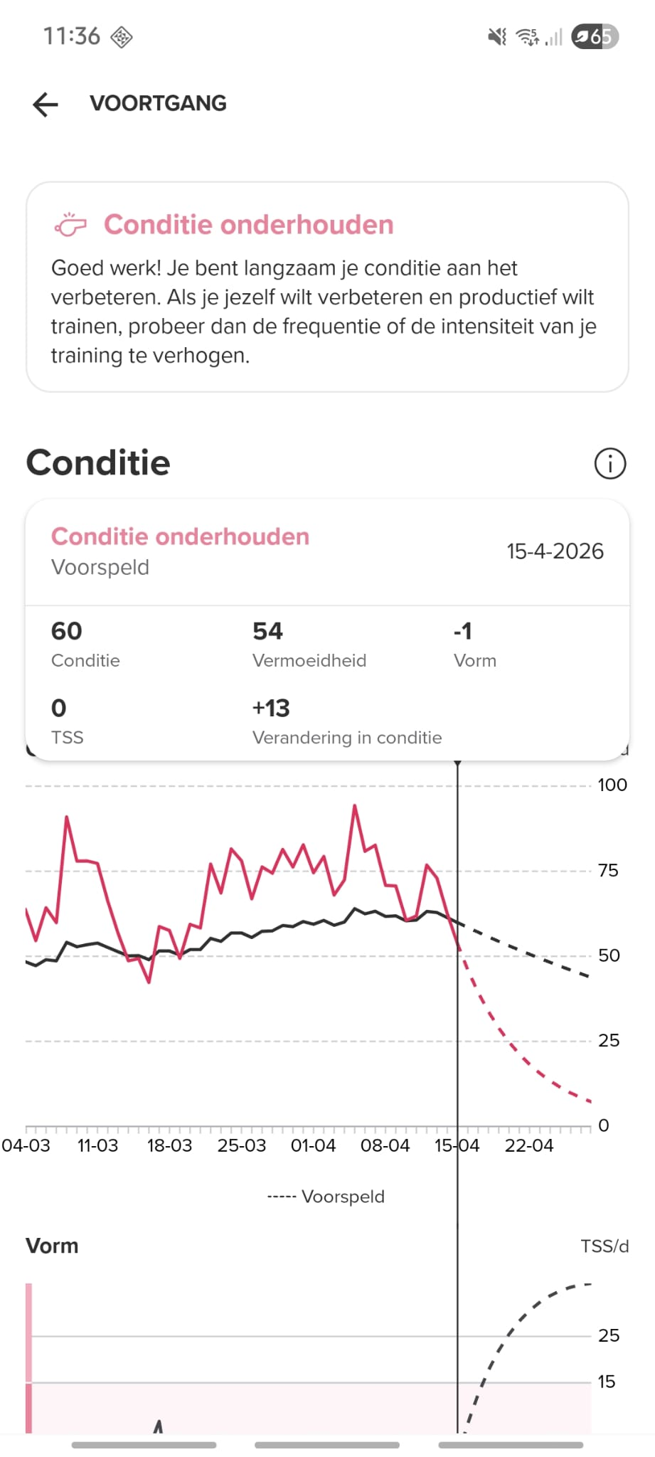 Now I have the Coach made a plan for ‘keep running’, only a few hours per week to simulate my taper to my race 2nd of may. It makes sense now! I’ll use this to detemine to train more or less in those last weeks