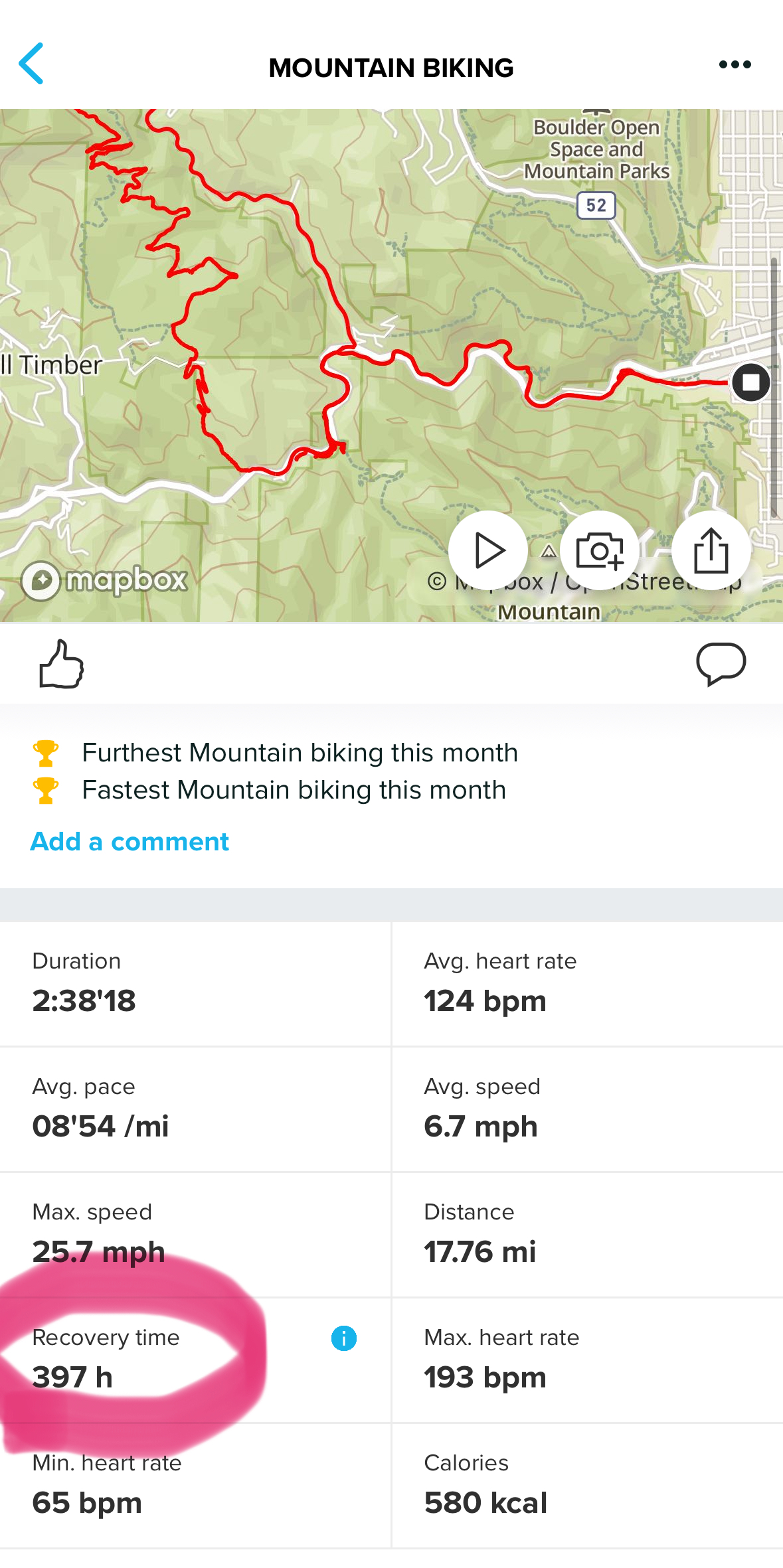 I was riding very calmly, had to stop several times (rain, mud) my actual HR was about 100 BPM but the OHR was stuck high (until I stopped again near the end of the activity)