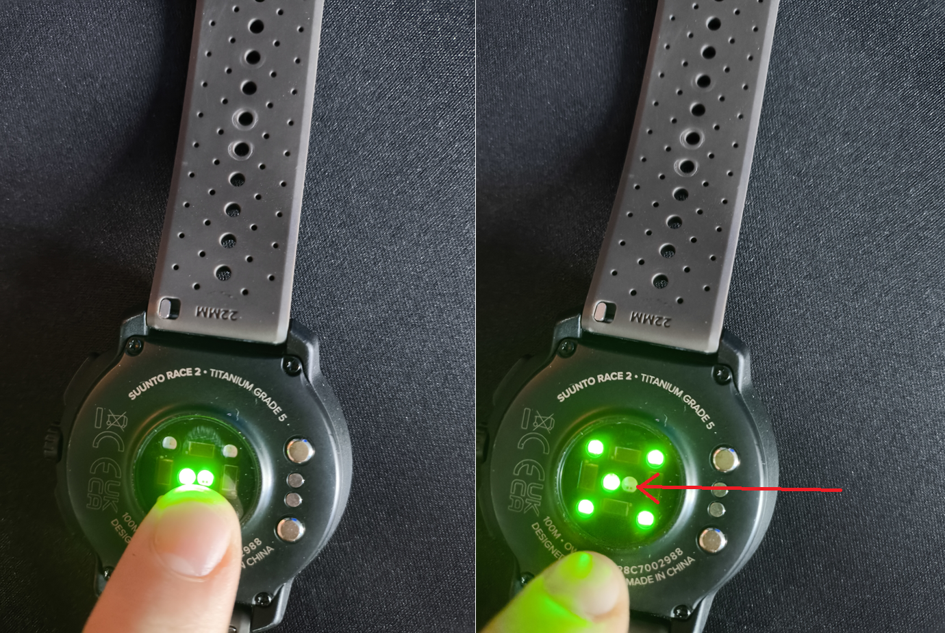 When training mode, 5 leds blinking. One from middle and 4 from corners and one of mid disappear. Shouldnt second one of middle blinking too? Not a big deal becouse iam happy about HR readings, would say same as Chest strap, but i dont know if its a bug or everything is fine. Could Suunto Race 2 users confirm that? -