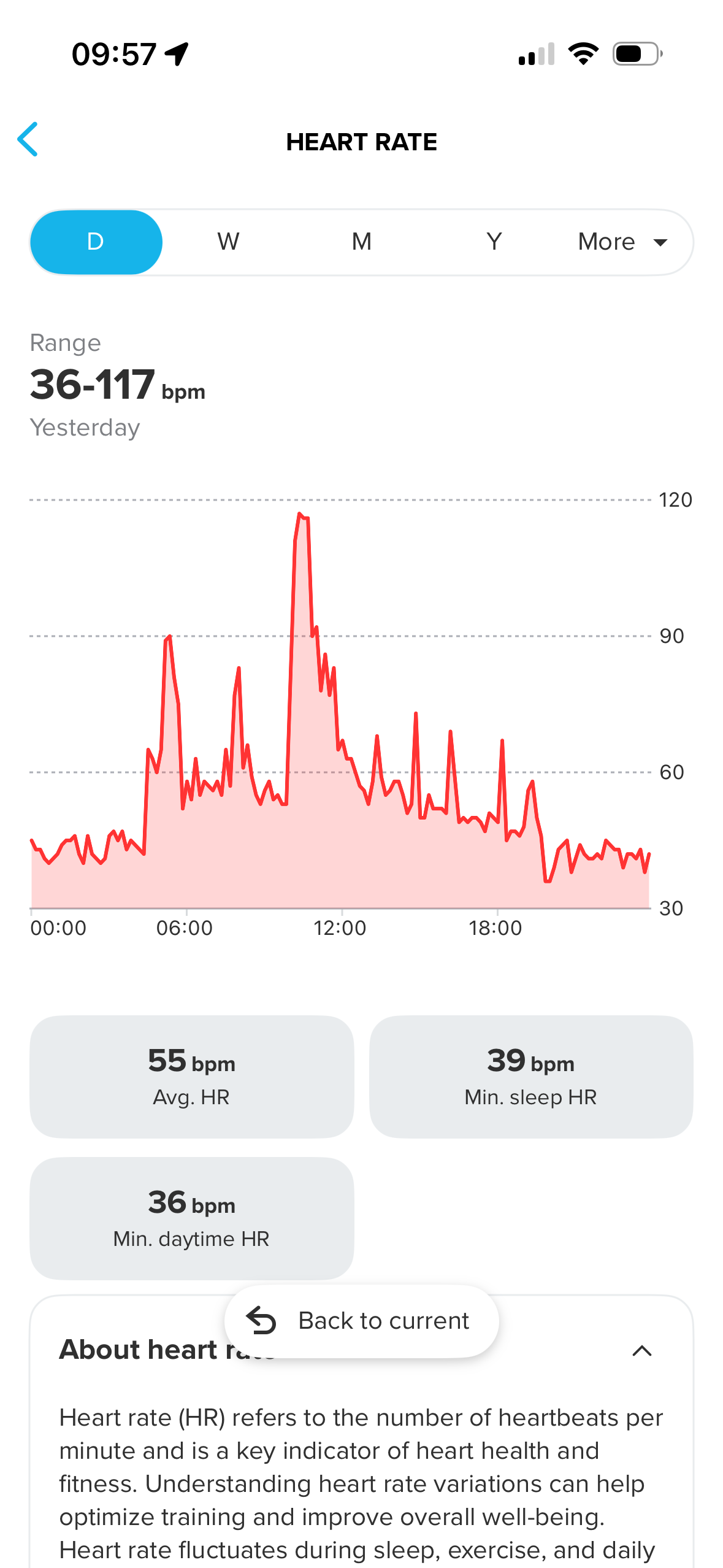 To see the correct minimal heart rate for last night you have to look at yesterday’s data in the app. The minimal heart rate widget doesn’t show this data as it only shows data from 00:00.