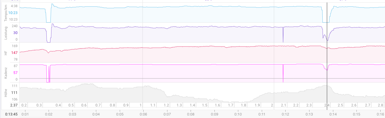 I’ve just seen something odd in intervals.icu. Today I stopped at two traffic lights and waited for it to turn green again. Despite no tempo at all the watch recorded cadence and power.