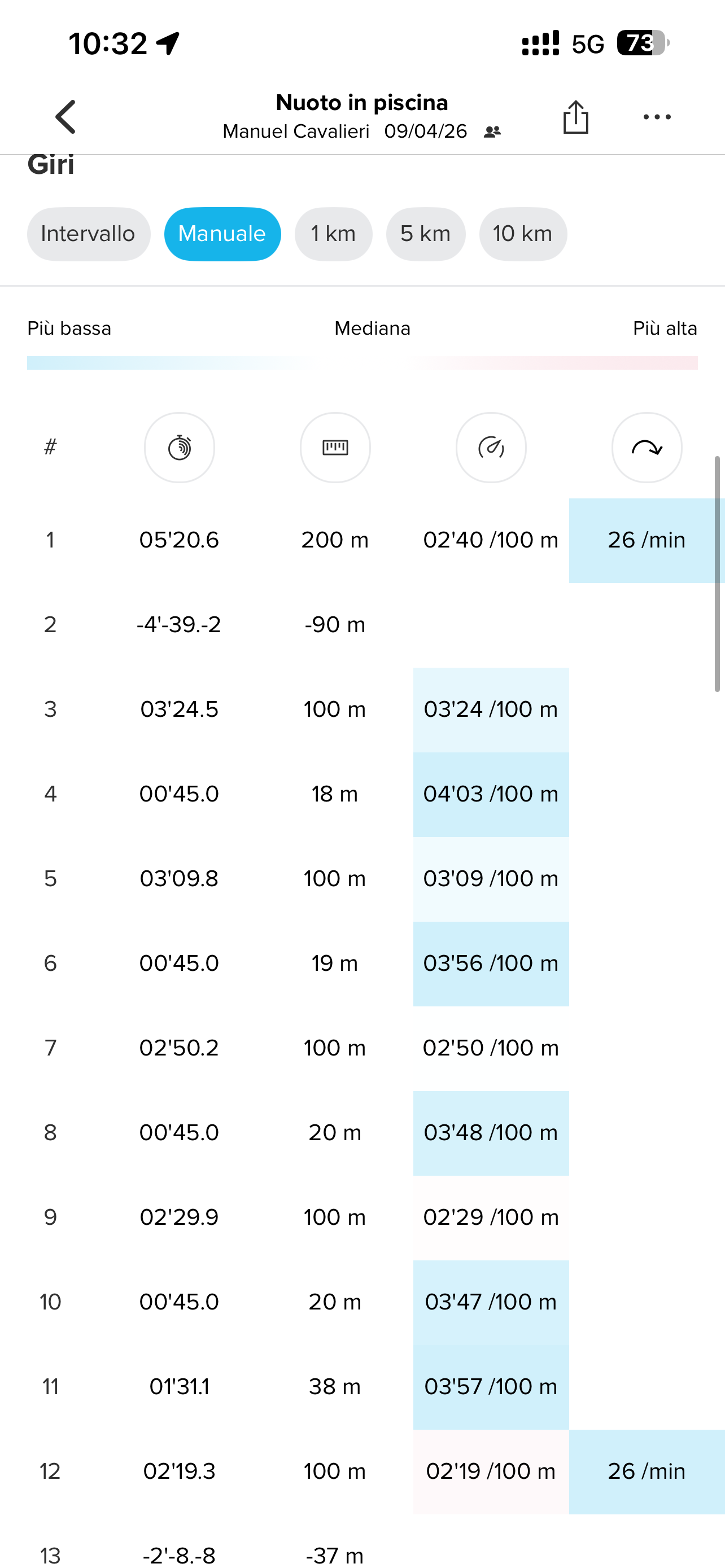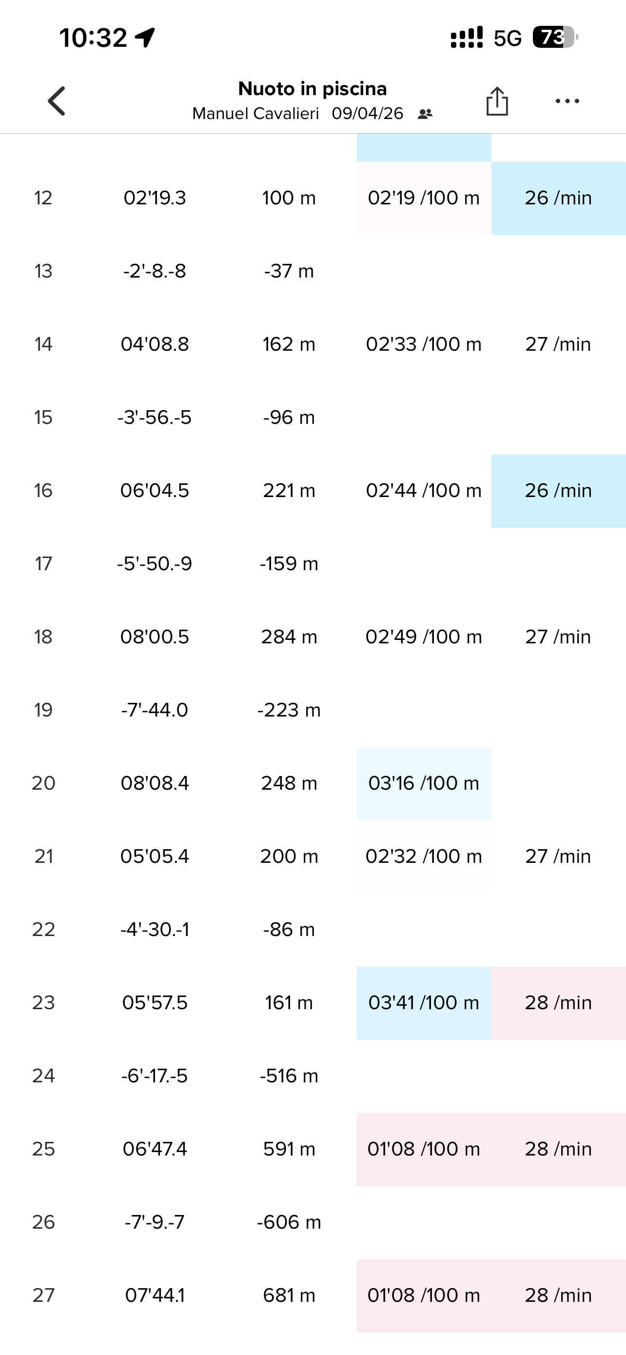 • Activity type: pool swimming (25m pool)