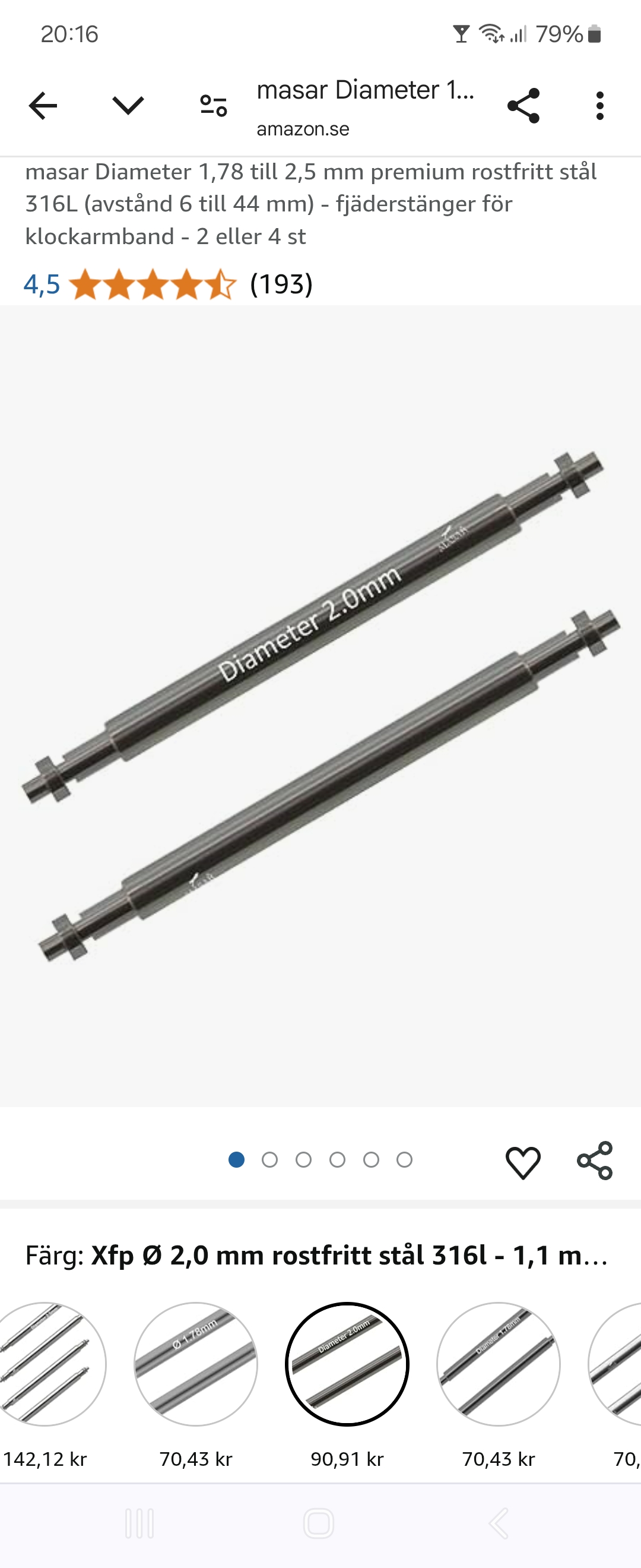 The only one I could find with a documented 1.1 mm tip (which fits perfectly) on Swedish Amazon was the below pictured from the French company Timed x Masar FR. The SKU was XFP200M22 (the 22 mm version) and it has a middle section bar of 2.0 mm which is perfect for Garmin style QuickFit bands and also isn’t too thick for pressing in an ‘UltraFit’ style nylon strap.